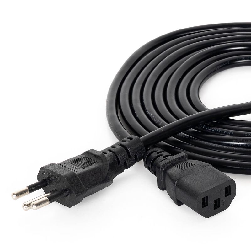 Cabo de Força Novo Padrão 10A para conexão de equipamentos na rede elétrica. Pode ser utilizado em: computadores, monitores, fonte, televisão, entre outros equipamentos. Com tomadas tripolar, esse cabo tem é pp 3x0,75 mm², conta com plugues 180° 2P+T de 10 A.